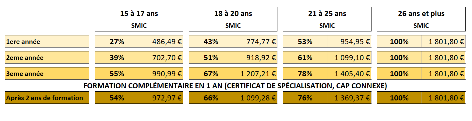 - Si contrat de BAC PRO 2 ans = rémunération de 2ème et 3ème années.