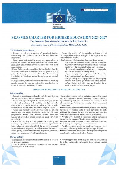 L’EPMT est liée aux programmes d’actions de mobilité européenne et internationale de l’Agence Erasmus+