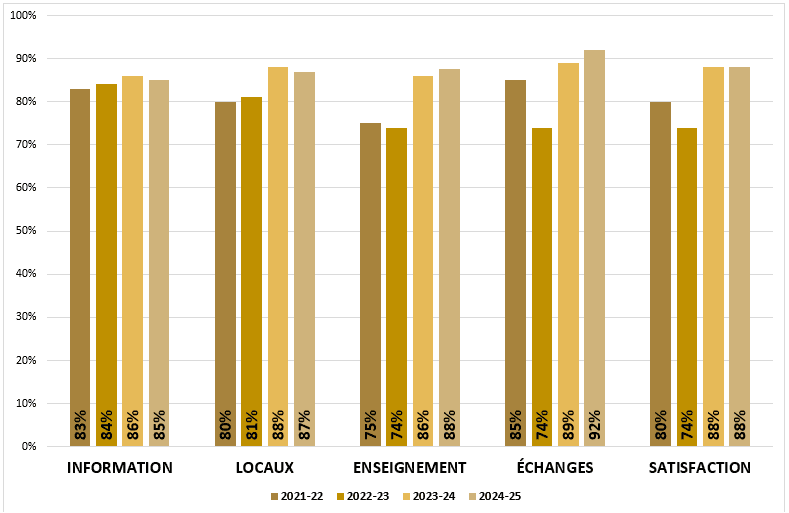 Évolution du taux de satisfaction en fin de formation de 2022 à 2025.